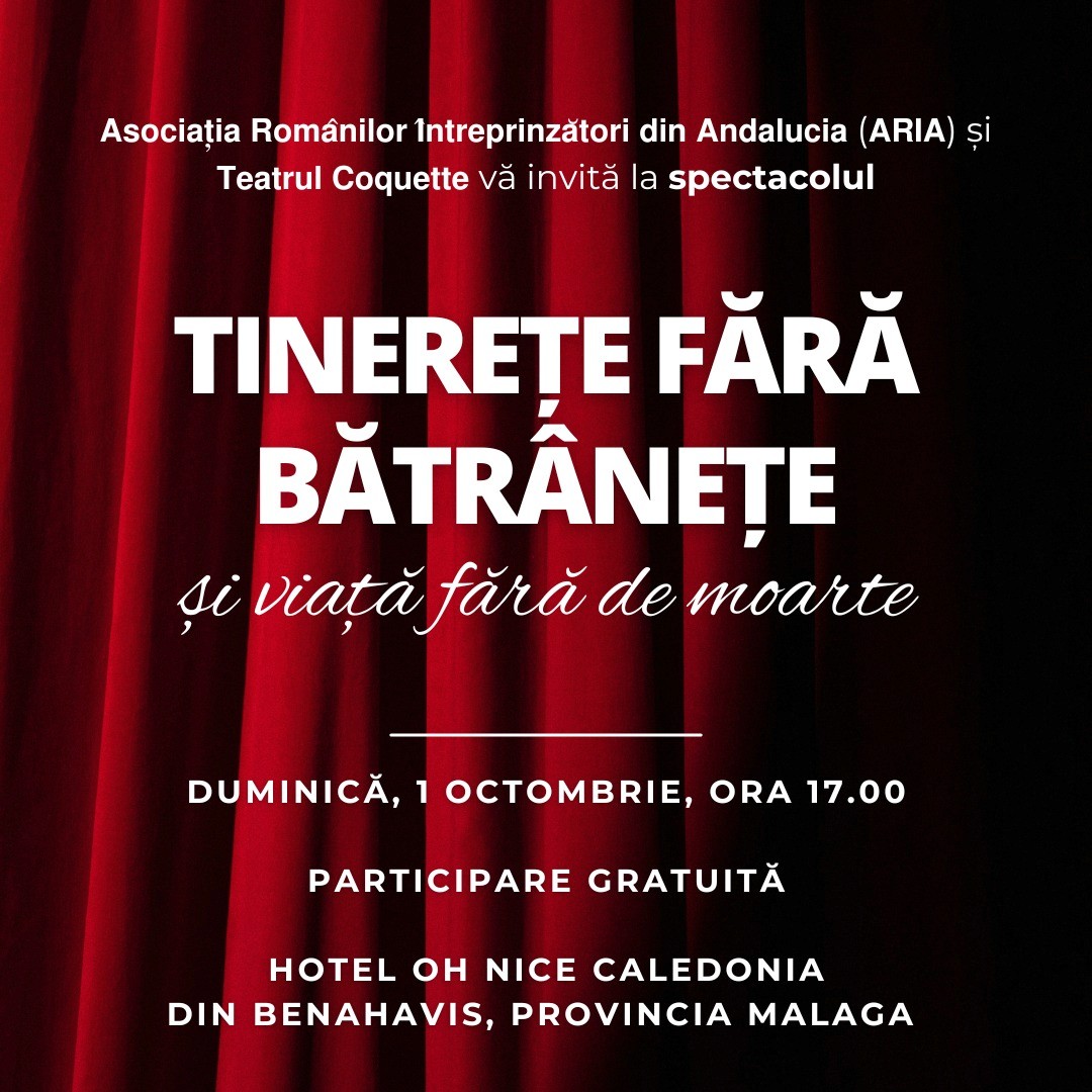 Ne-am bucurat sa vedem peste 100 de romani din provincia Malaga, cu mic cu mare, adunati in aceeasi sala pentru a viziona spectacolul “Tinerete fara batranete si viata fara de moarte”, cu trupa de actori a teatrului Coquette venita special din Bucuresti.